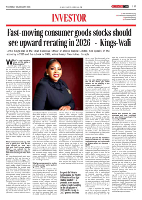 Looking ahead, the 2026 outlook remains cautiously optimistic, with Nigerian equities still trading at significant discounts to peer markets despite strong returns in 2025. Financial services, industrials, and fast-moving consumer goods are expected to benefit from moderating inflation, recovering consumer demand, and potential monetary policy easing aligned with global trends. Sustained investor confidence, however, will depend on disciplined policy coordination, responsible tax reform implementation, improved security, and stronger fiscal accountability.